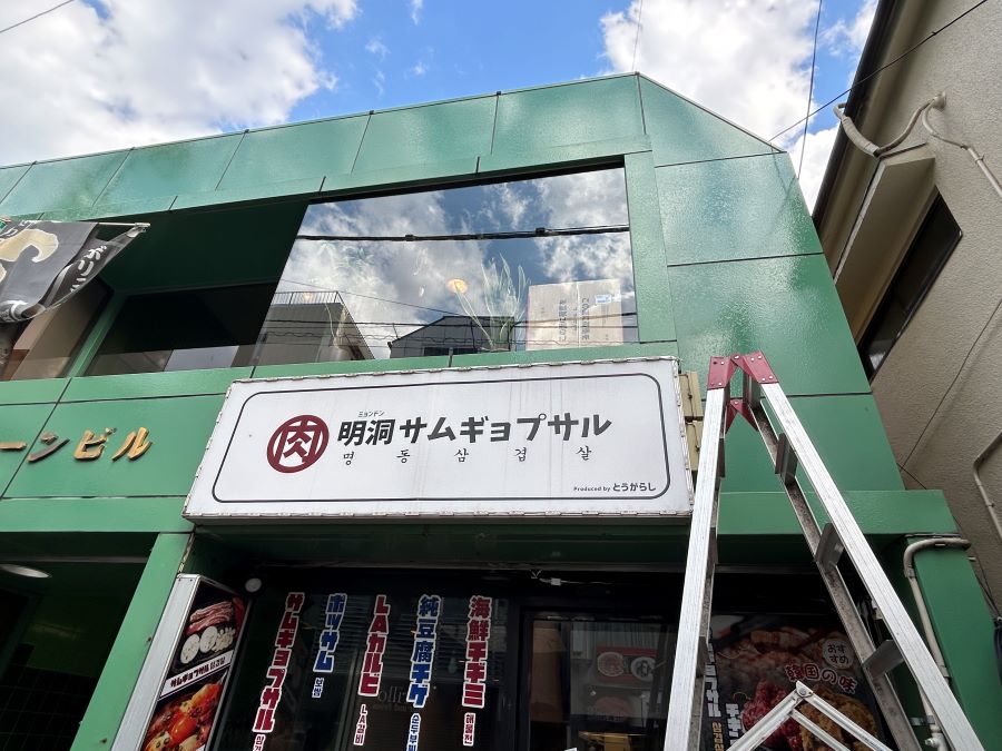 ‍こちらが剥がす前の写真です。2階の窓の下半分のシートを撤去いたしました。