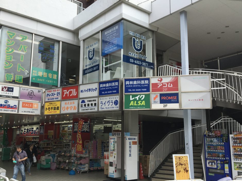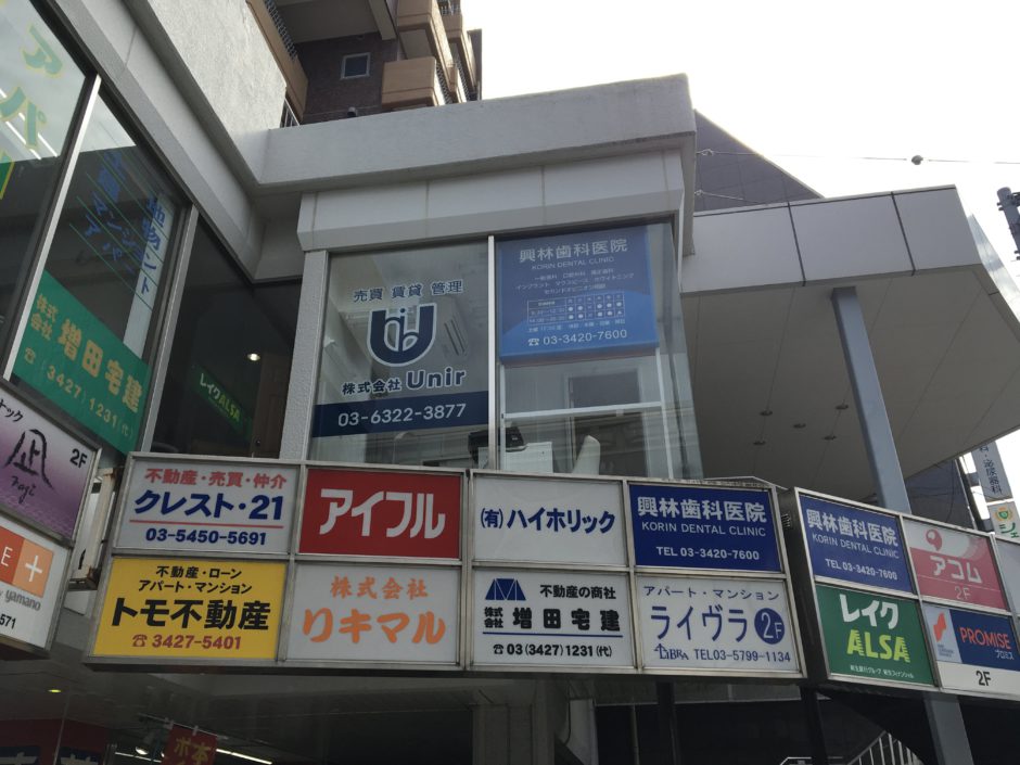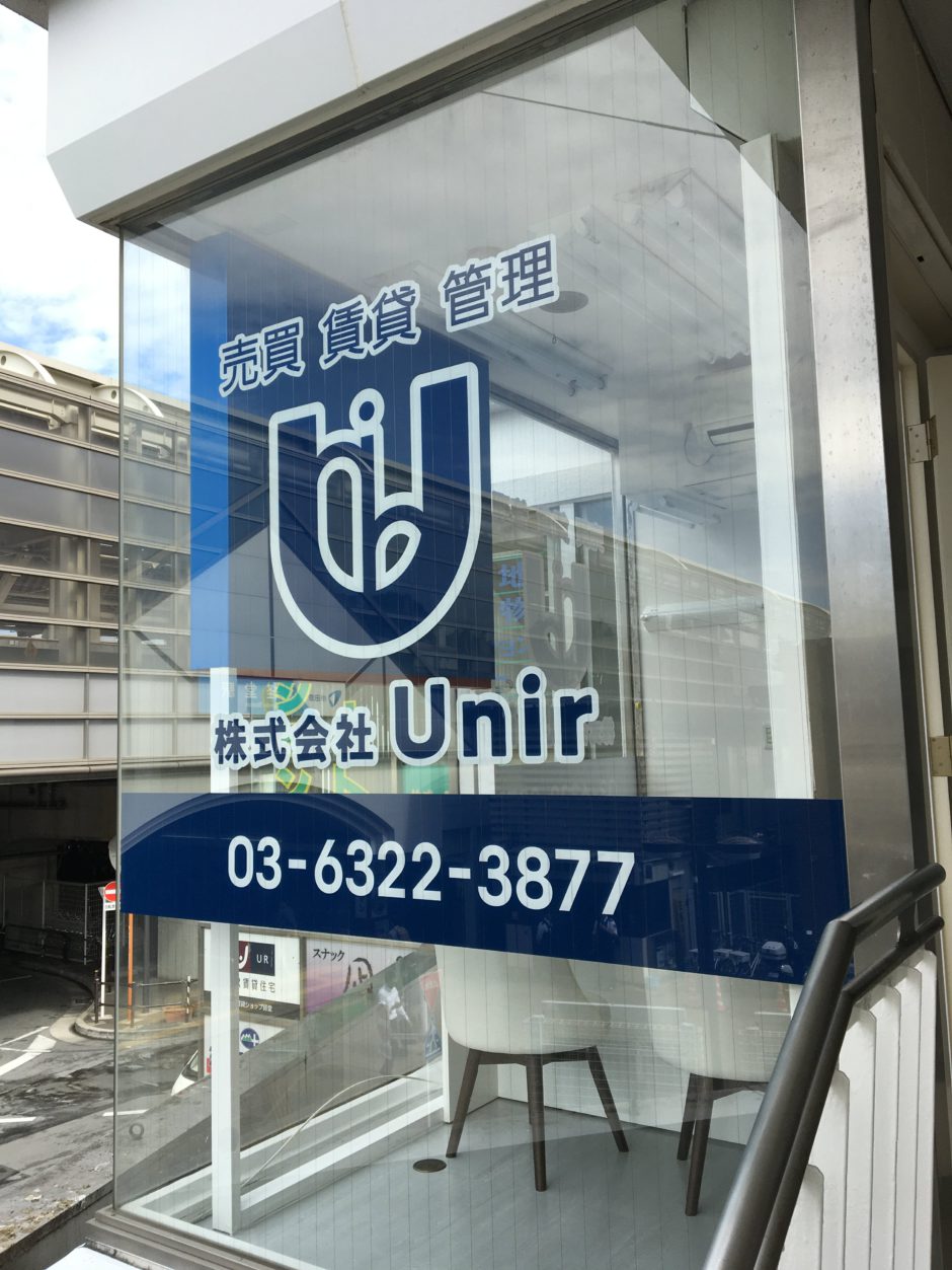 ‍駅前の商業ビル入口に店名ロゴを施工貼り付け。
