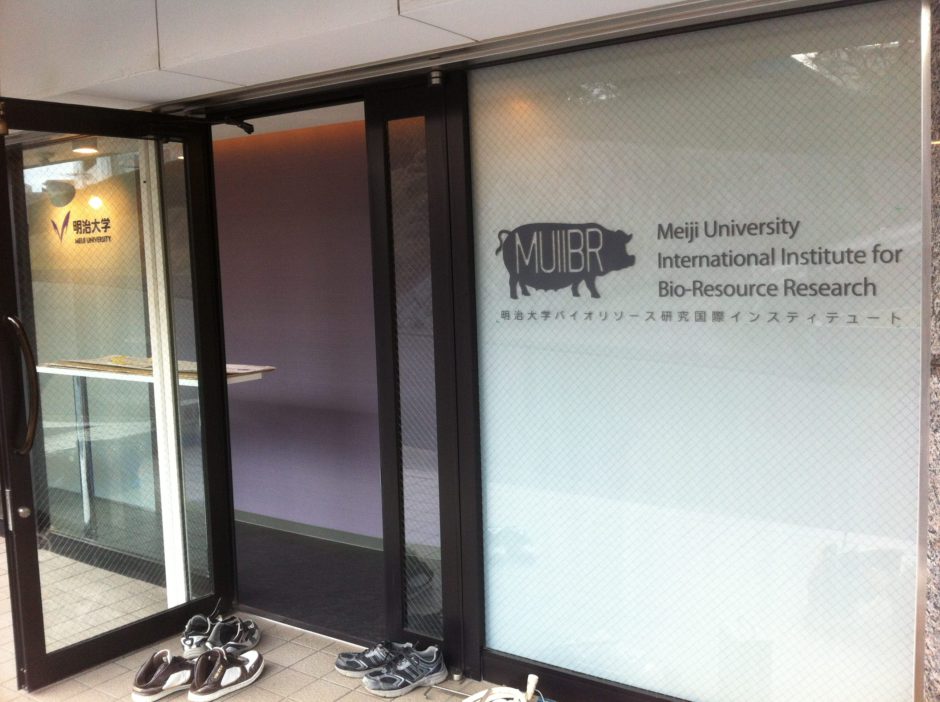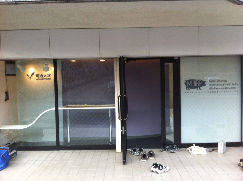 ‍大学施設の入口に施設情報を窓カッティングシートで。