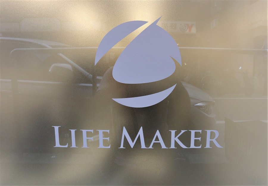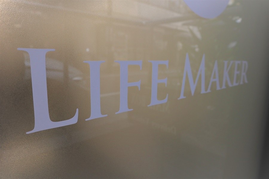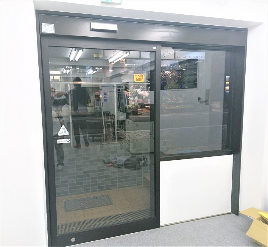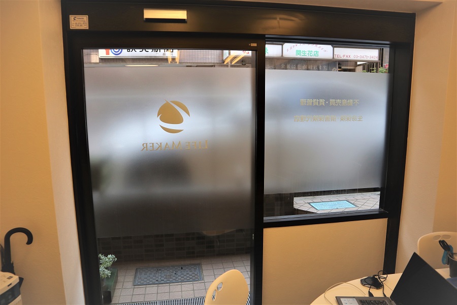 ‍店舗路面側のエントランス部分に目隠しとカッティングシートを貼付。