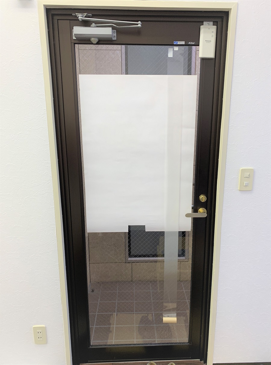同じくドア窓部にも目隠しフィルムのサンプルでチェック。