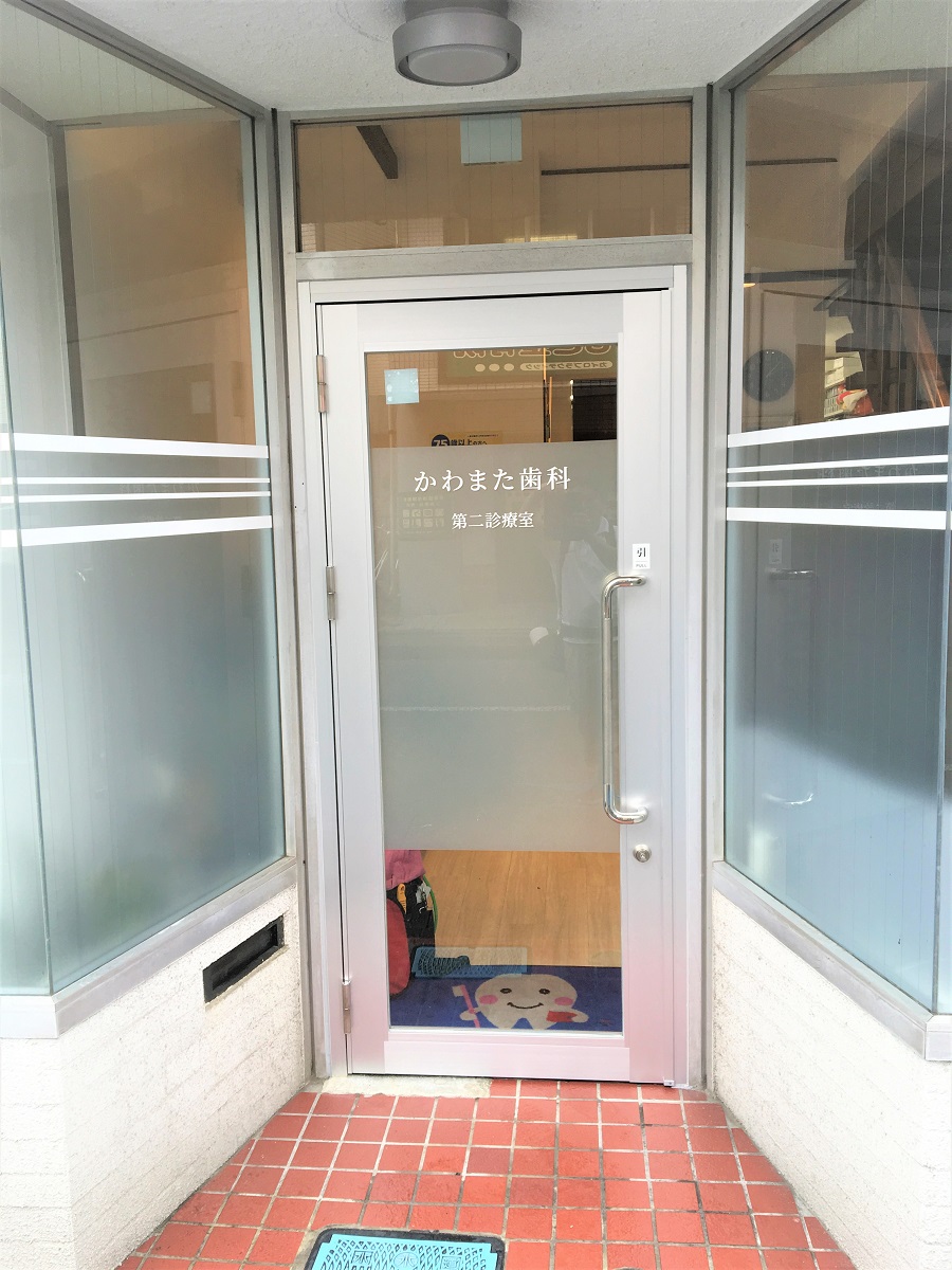 ‍クリニック入口とサイドの窓に目隠しフィルム、カッティングシートを貼り付け。