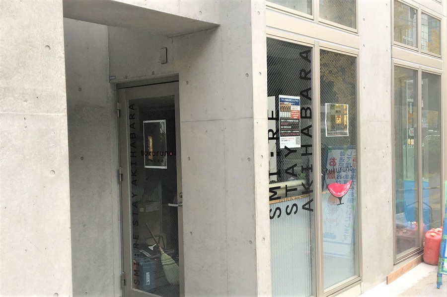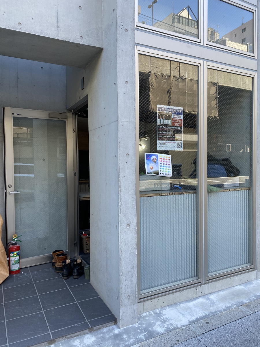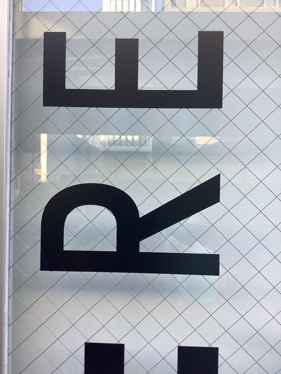 ‍店舗入り口の窓扉と側面のフィックス窓部にカッティングシートでデザイン。