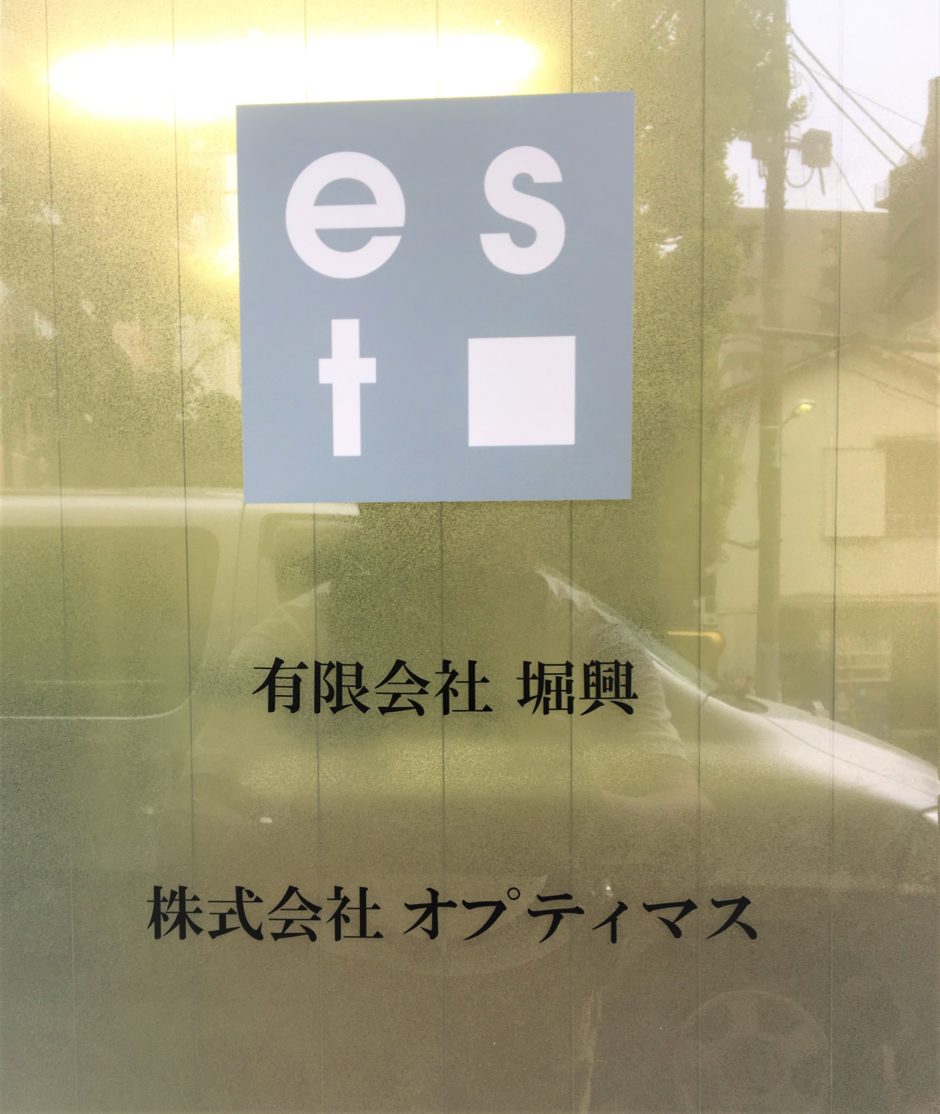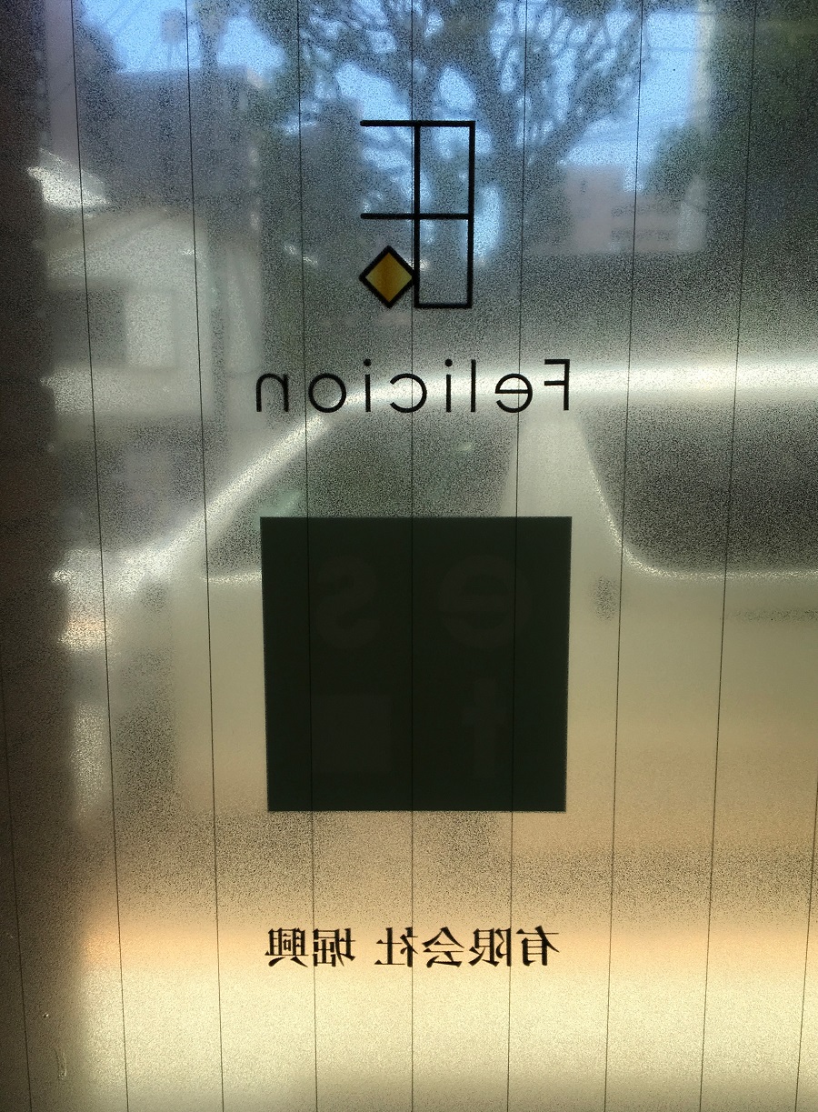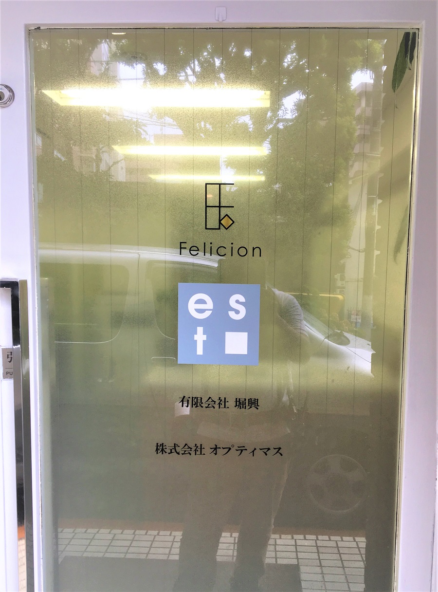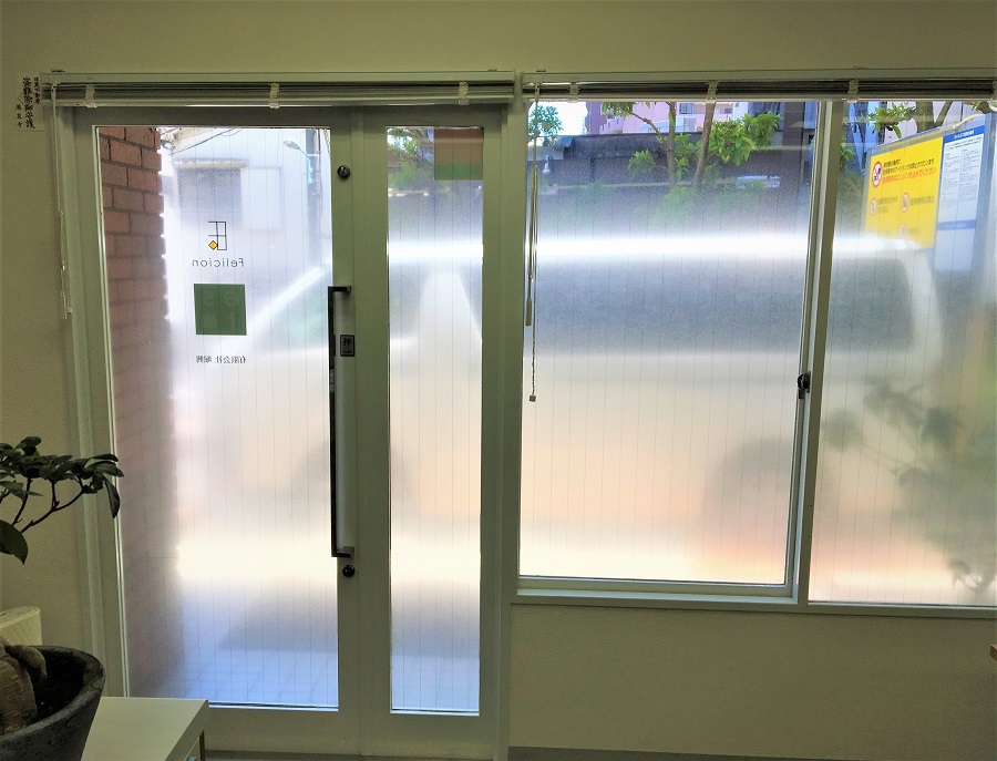 ‍屋外、施設入り口の扉にカッティングシートを貼り付け。