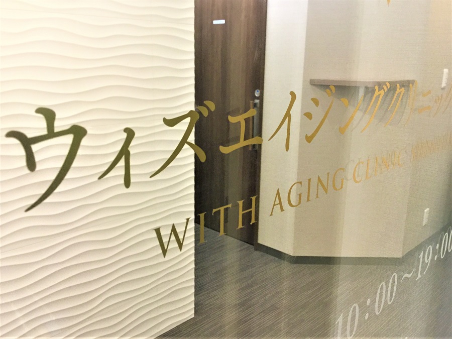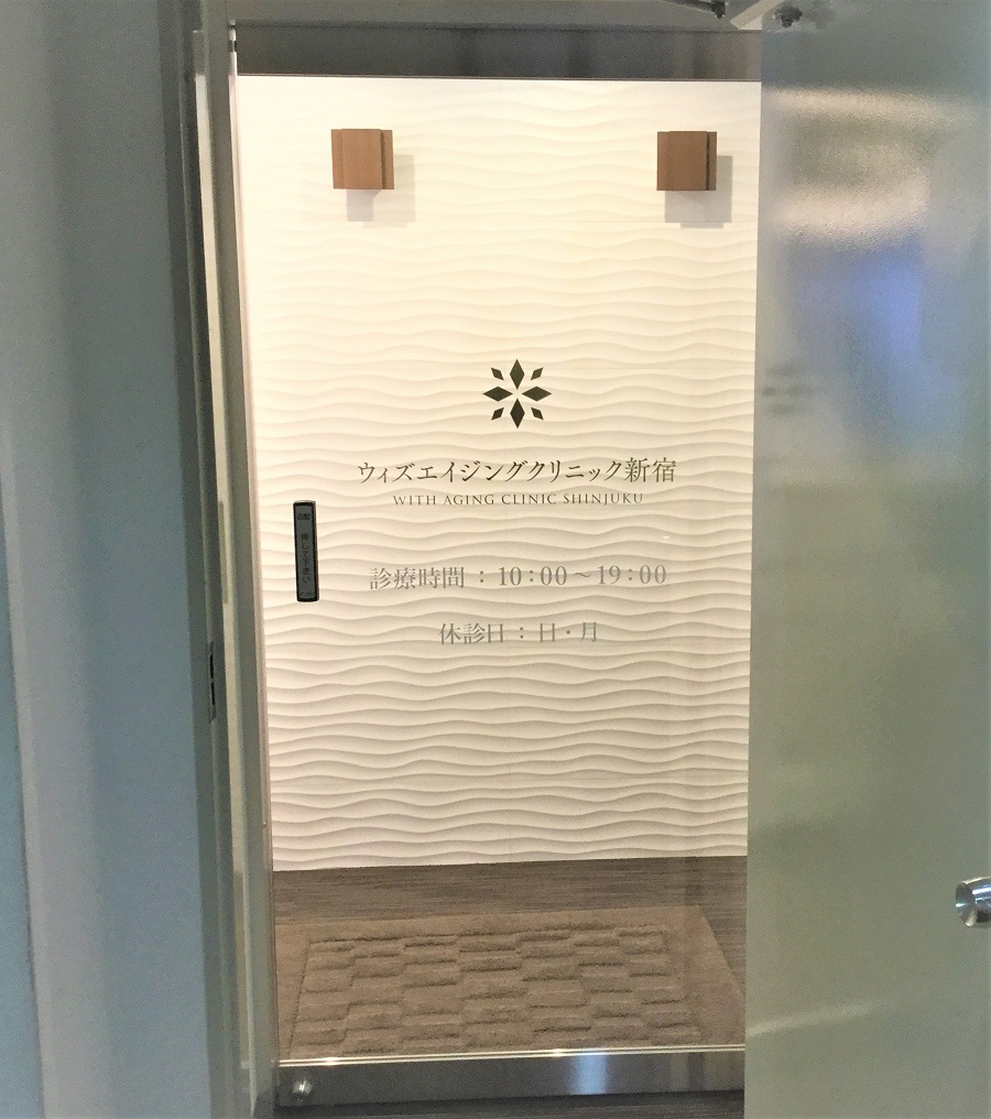 ‍クリニック入口にカッティングシートを貼り付け。