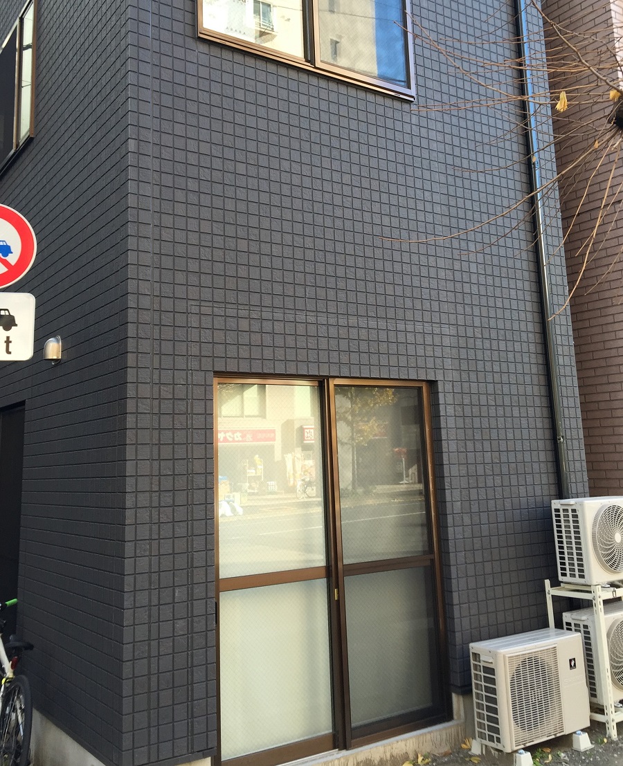 ‍二階窓にも目隠しフィルムとロゴのカッティングシートを貼り付け。