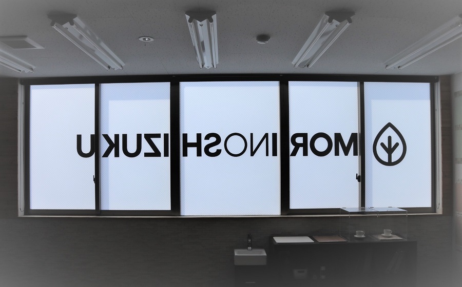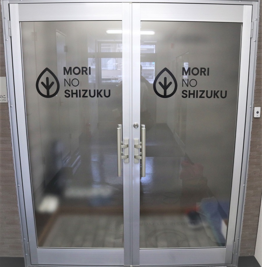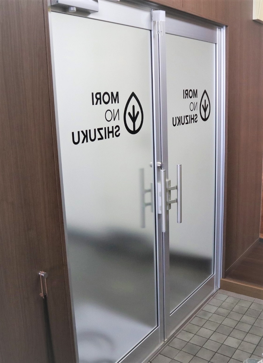 ‍オフィス入口のガラス扉に目隠しフィルム(MS90)、カッティングシートを貼り付け。
