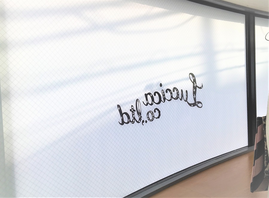 ‍透過度の低い目隠しフィルムに黒字の文字でくっきりと。
