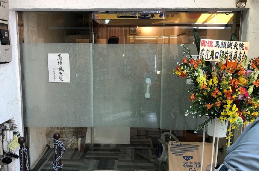 ‍施設入り口に施設情報、ロゴマークを貼り付け。