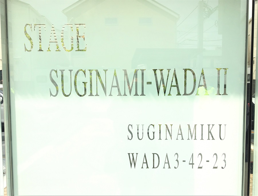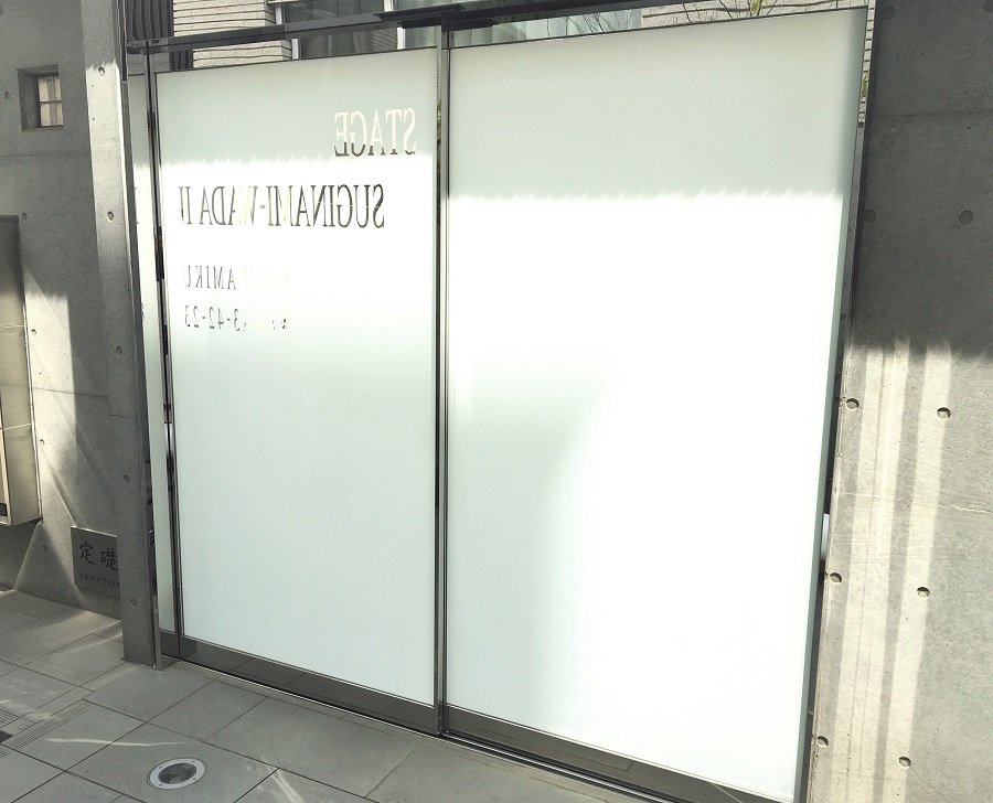 ‍エントランスの自動扉に目隠しフィルム。そこにカッティングを施します。