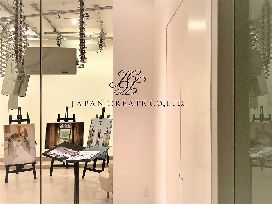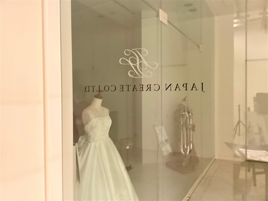 ‍スタジオのウィンドウにカッティングシートでロゴを貼り付け。