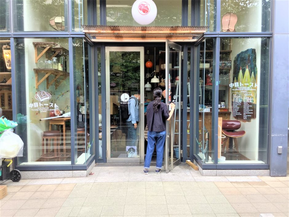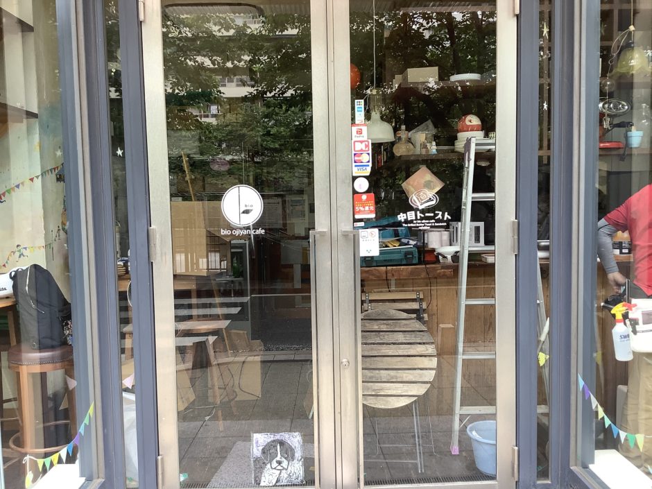 ‍店舗のウィンドウにカッティングシートでロゴを貼り付け。