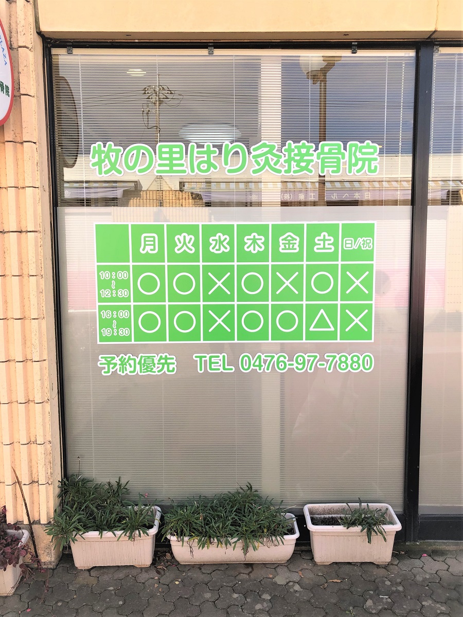 ‍施設のフィクス窓に診療内容をインクジェット印刷で表示。
