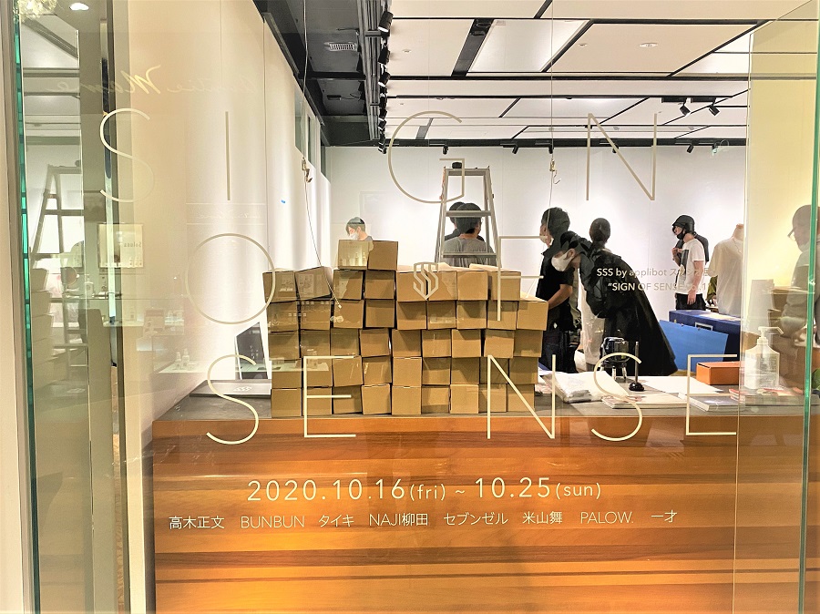 ‍催事会場のウィンドウに催事名や期間の案内をカッティングシートで貼り付け。