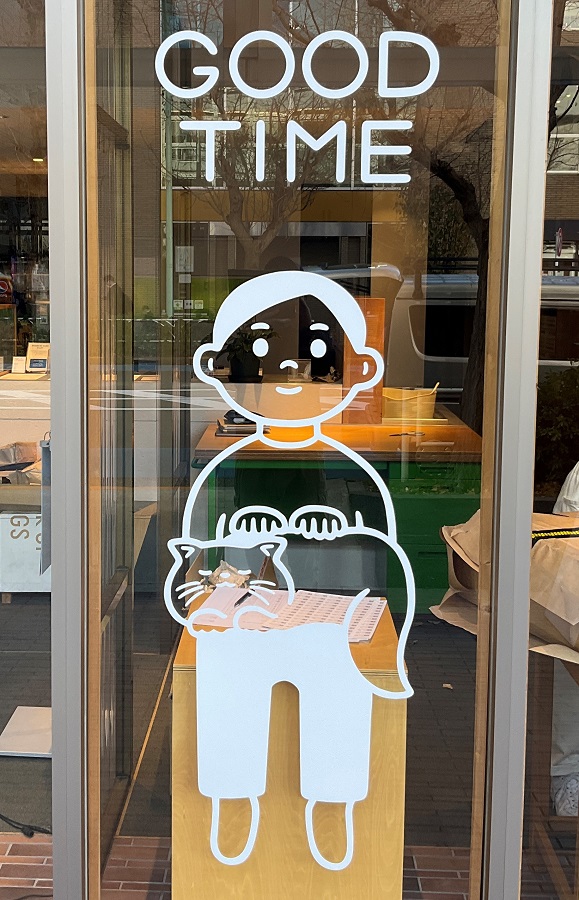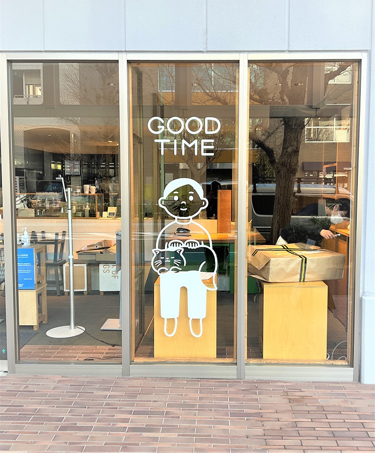 ‍路面店舗の壁面ガラスにオリジナルカッティングシートを貼付け。