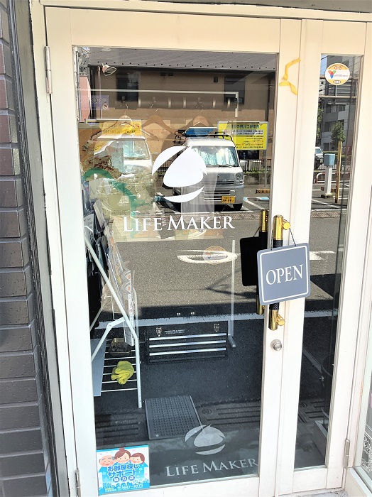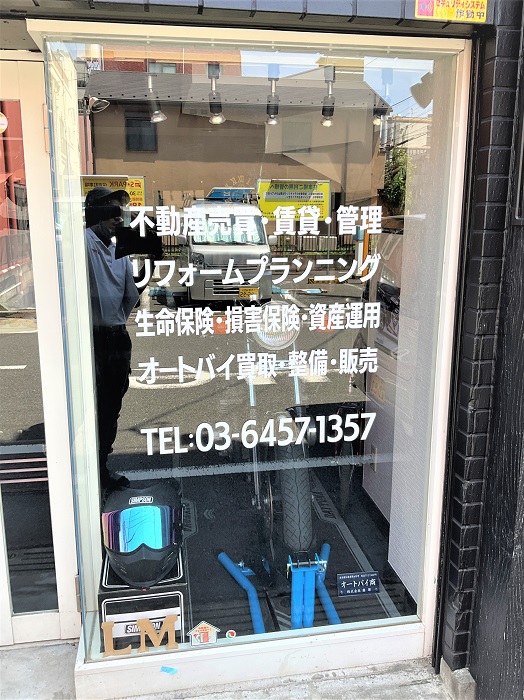 ‍店舗のウィンドウにカッティングシートを貼り付け。