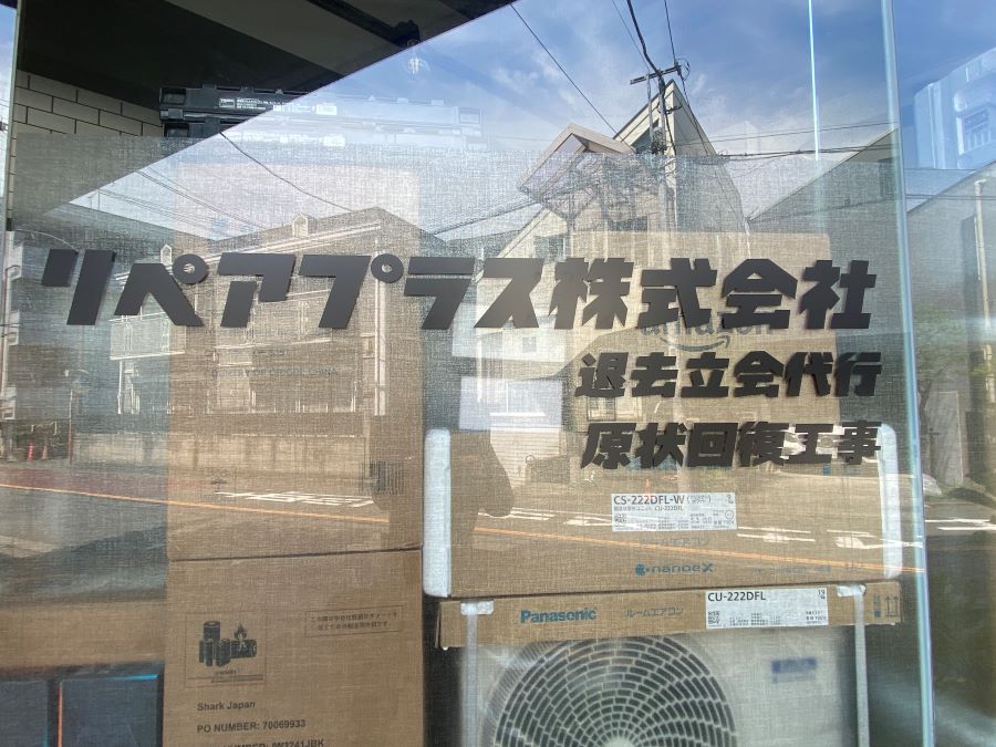 ‍オフィスの入り口、およびウィンドウに目隠しフィルムとカッティングシートを貼り付け。