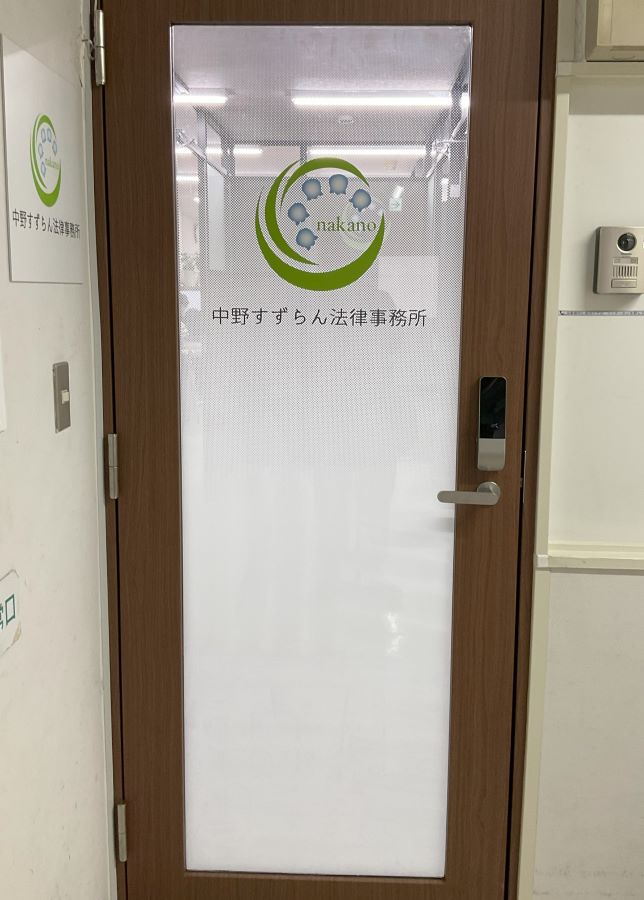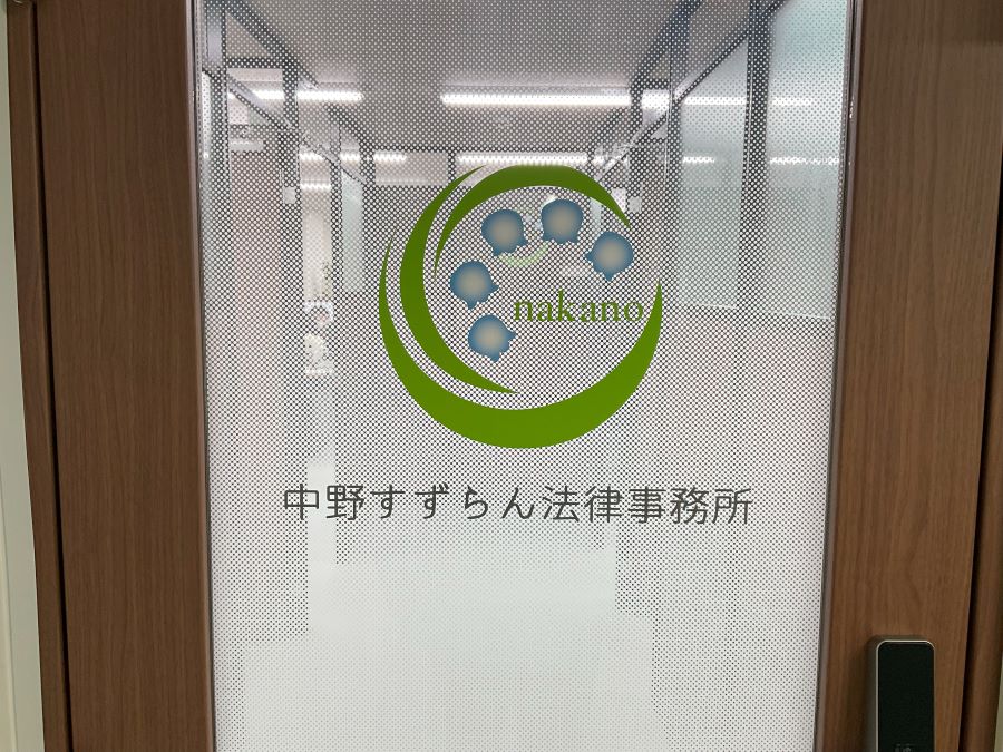 ‍事務所の入り口ドアにカッティングシートとグラデーションタイプの目隠しフィルムを貼付け施工。