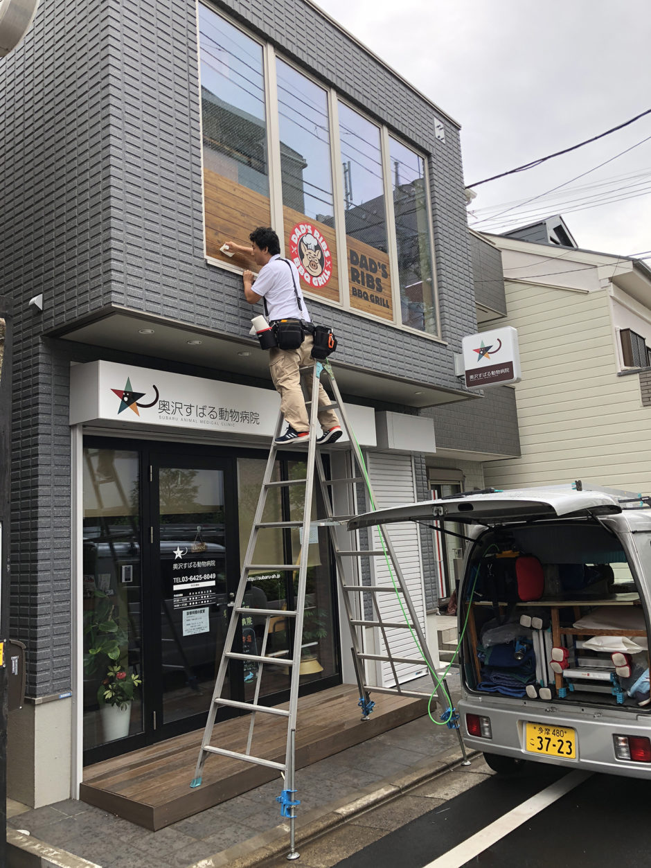 ‍施工後。道路から目を引く、存在感ある店舗ロゴのディスプレイ。