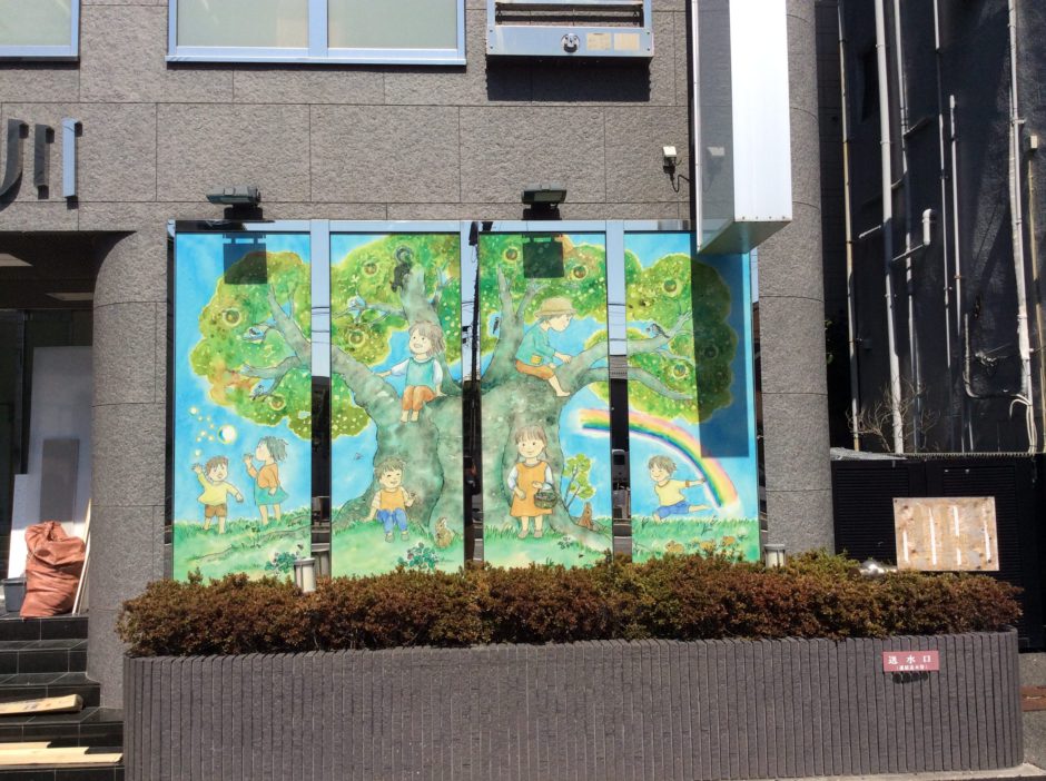 ‍保育園の入口ファザードに窓プリントシートを施工