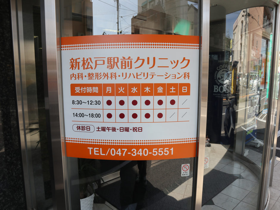 ‍クリニックの建物ファザードに営業情報と診療内容を貼り付けました。