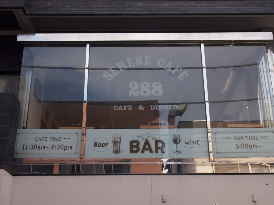 ‍通りに面した窓全面に、店舗ロゴや営業情報を店のコンセプトに合ったテイストで窓プリントシートに印刷して施工。