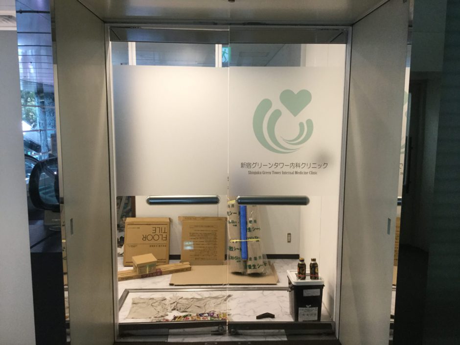 ‍施工後の店舗入口。ガランとしていた入口も店舗ロゴを貼ることで雰囲気が出ます。