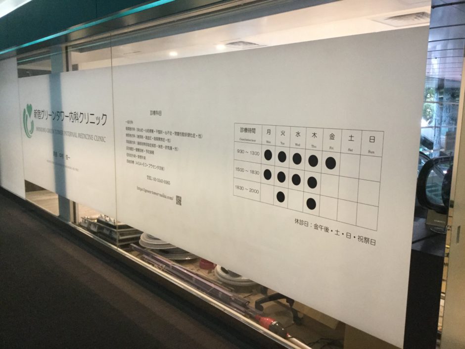 ‍施工前の外観。店舗の営業情報をより詳細に窓ガラスに貼ることができます。