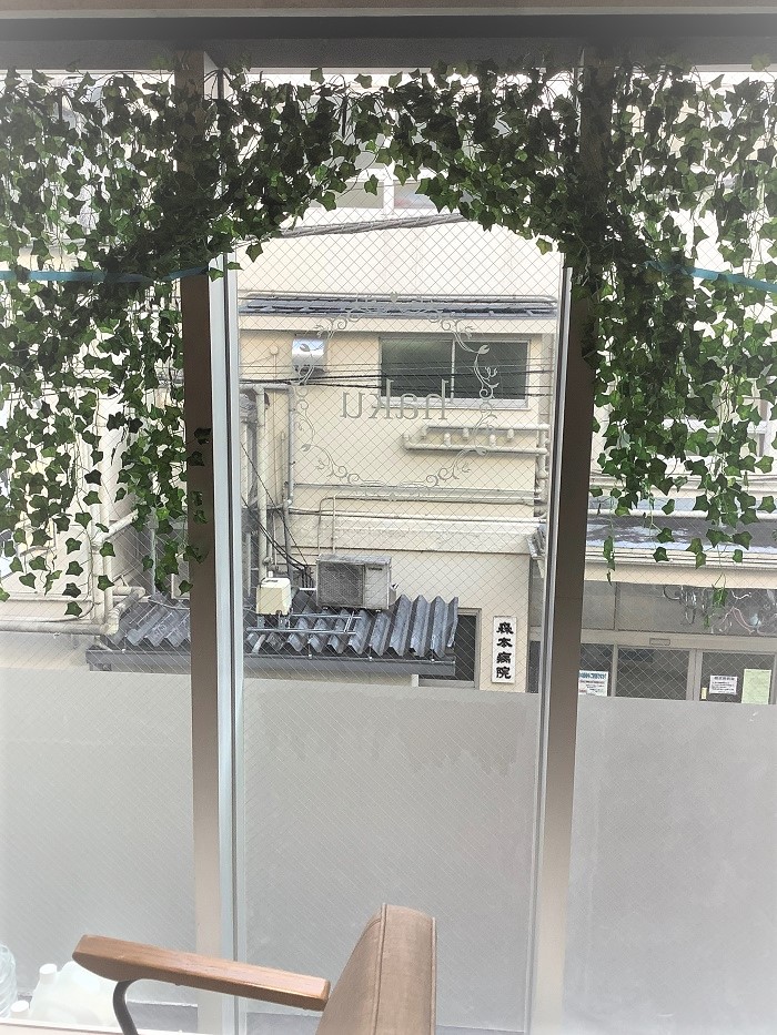 ‍路上から見た店舗窓部に、店名のロゴマークを。