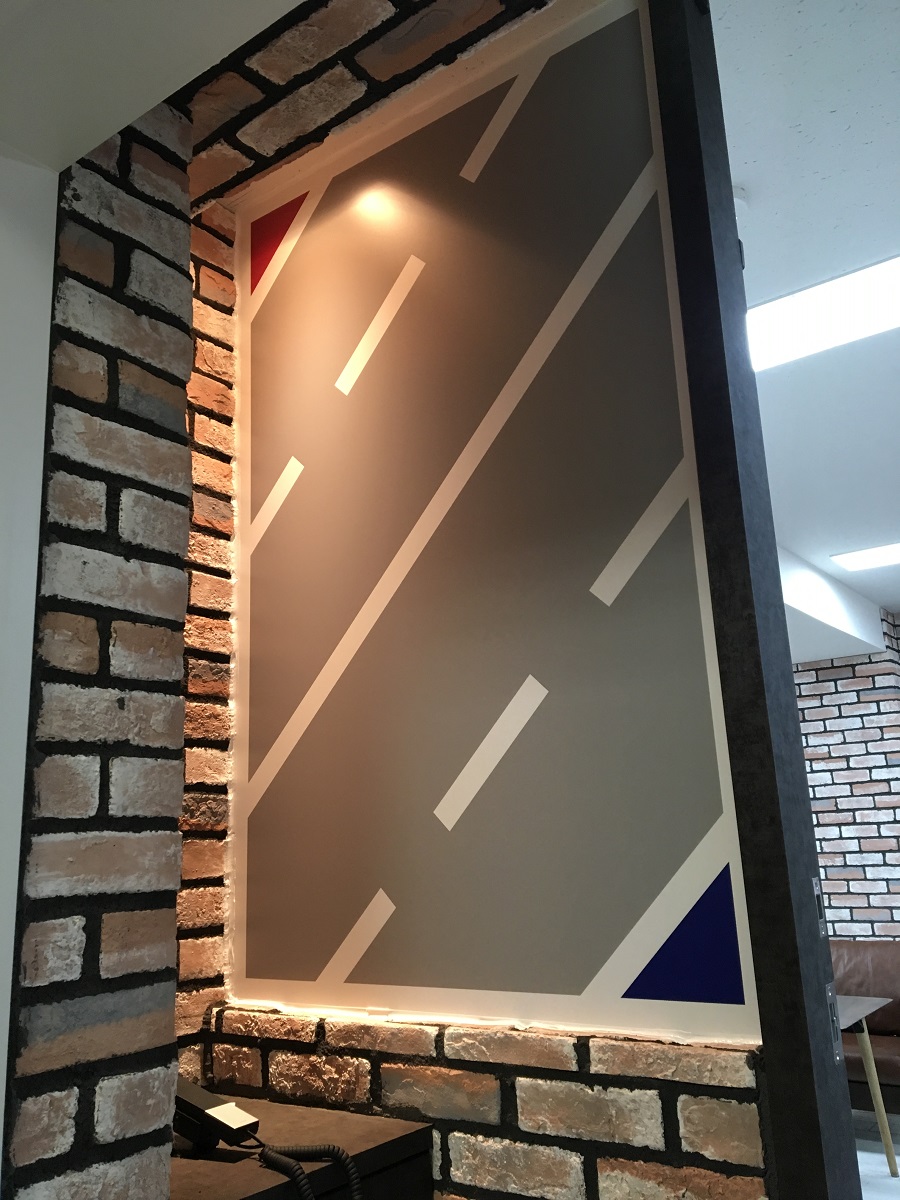 ‍ドアにはカッティングシートでロゴを。