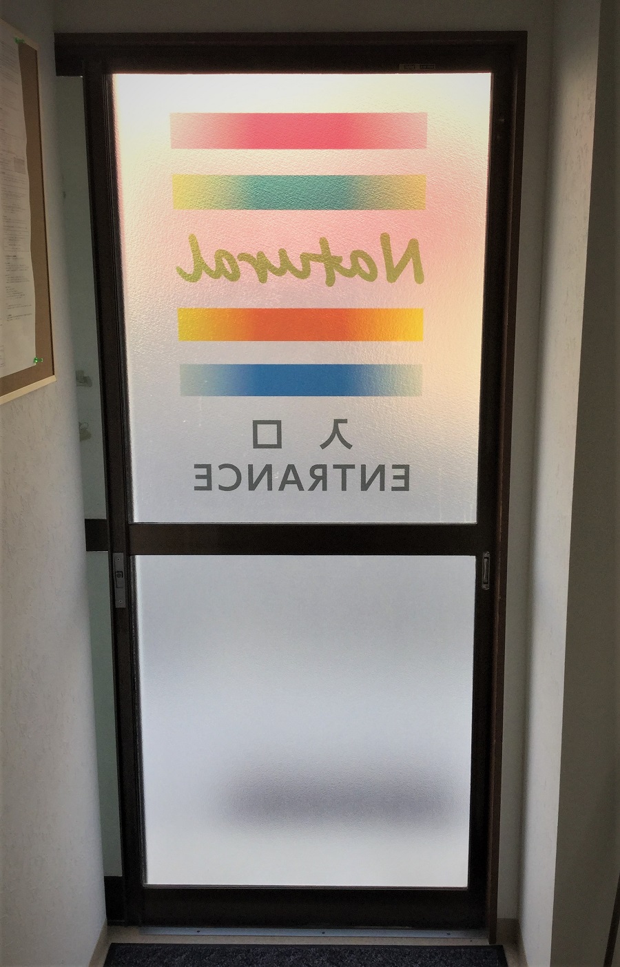 ‍引き戸入口、透明マットプリント。内側からの様子。
