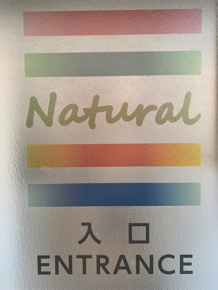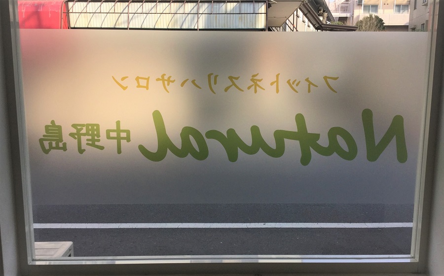 ‍店名。透明マットプリントで。