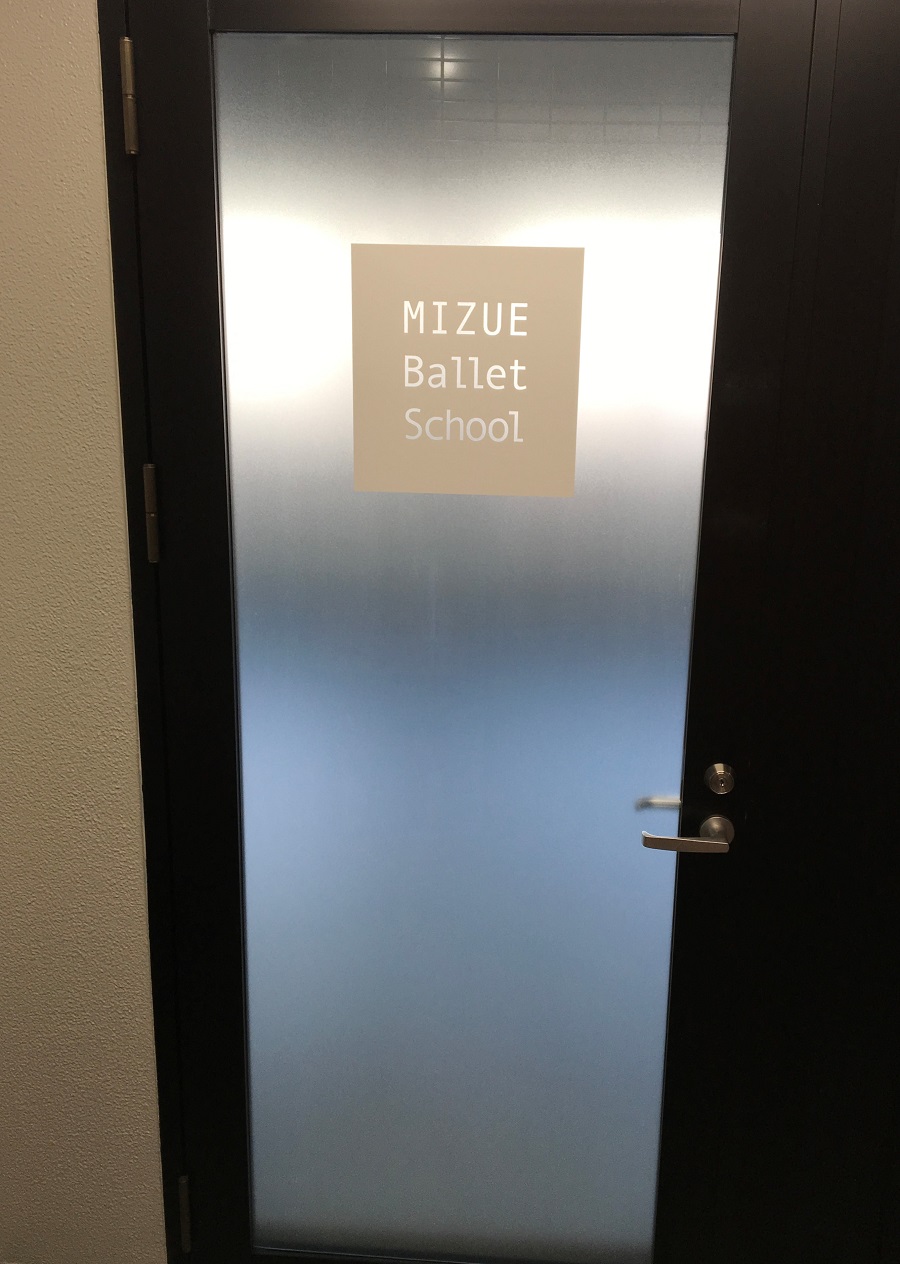 ‍スタジオ入口のガラス扉にガラスフィルムと白抜き文字。