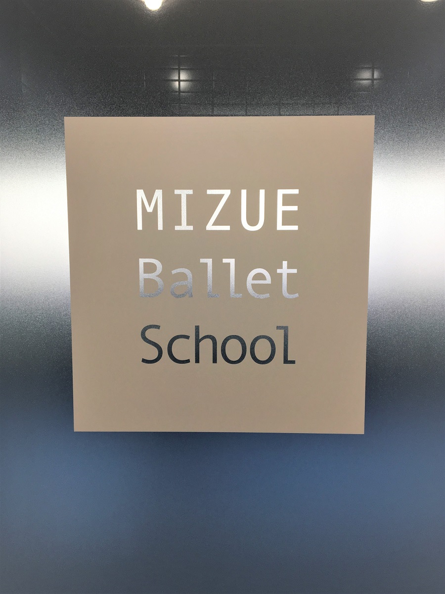 ‍ビル入り口の案内表示。白プリントフィルムで裏はグレー。