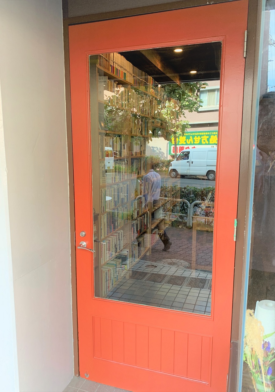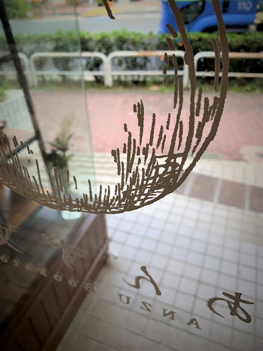 ‍店舗の扉窓部にオリジナルプリントを貼り付け。