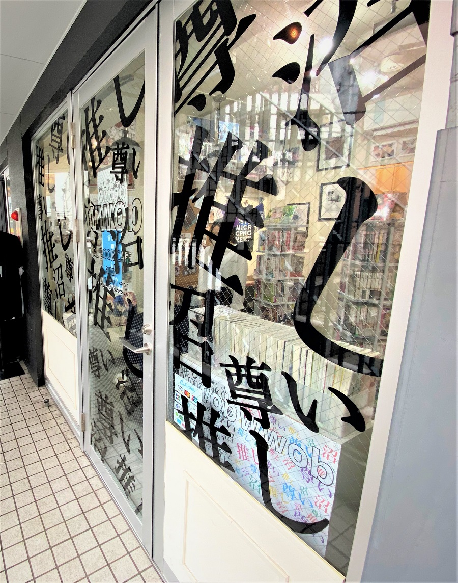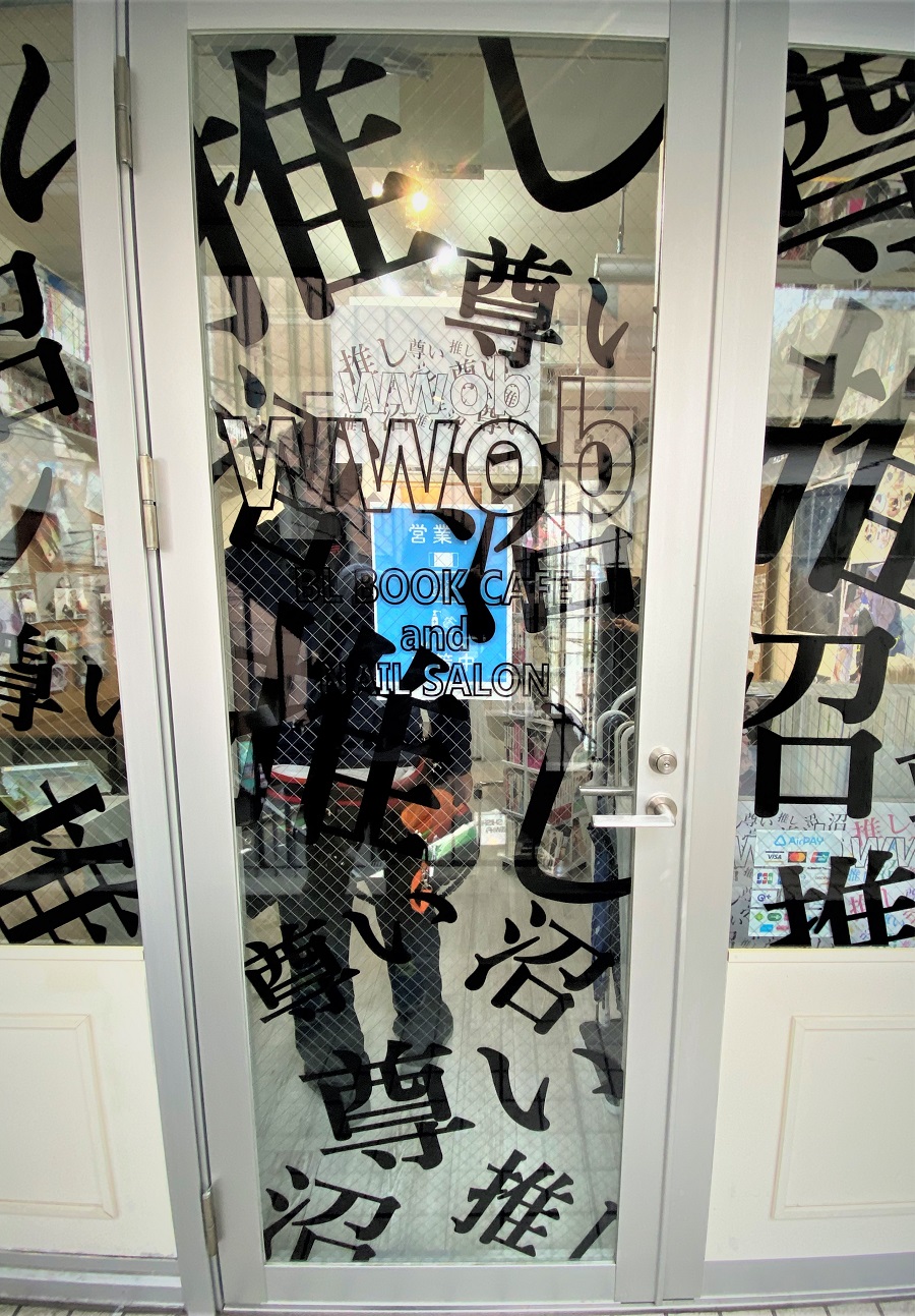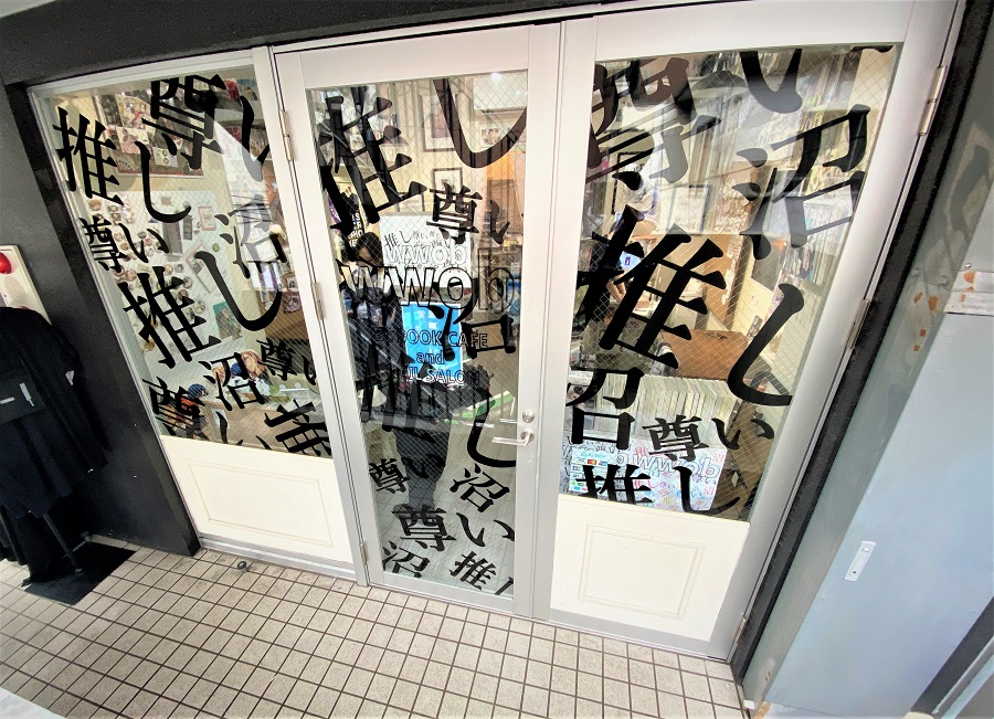 ‍店舗の入り口窓にオリジナルのプリントシートを貼り付け。