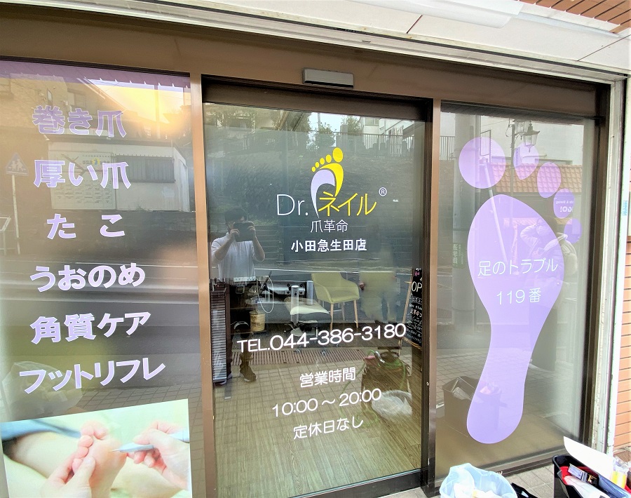 ‍店舗路面側の入り口ガラスおよびフィクス窓にオリジナルプリントシートを貼付け。