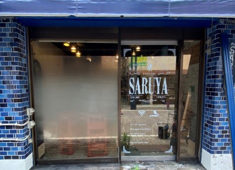 ‍店舗のガラス自動ドアにオリジナルプリントシートを貼付け。