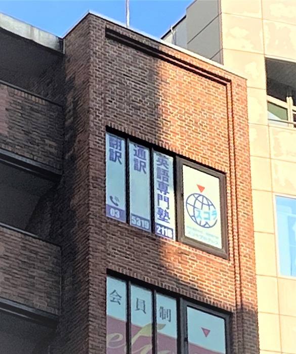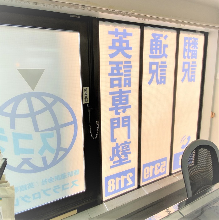 ‍ビル上層階の窓にオリジナルプリントシートを貼付け。