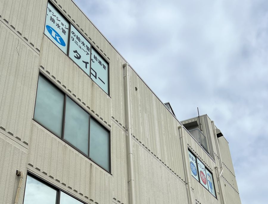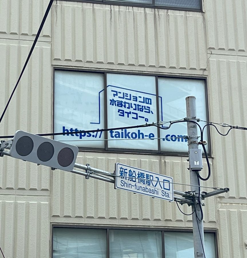 ‍オフィスの窓に社名やサービス案内を施したフィルムを貼付け施工。