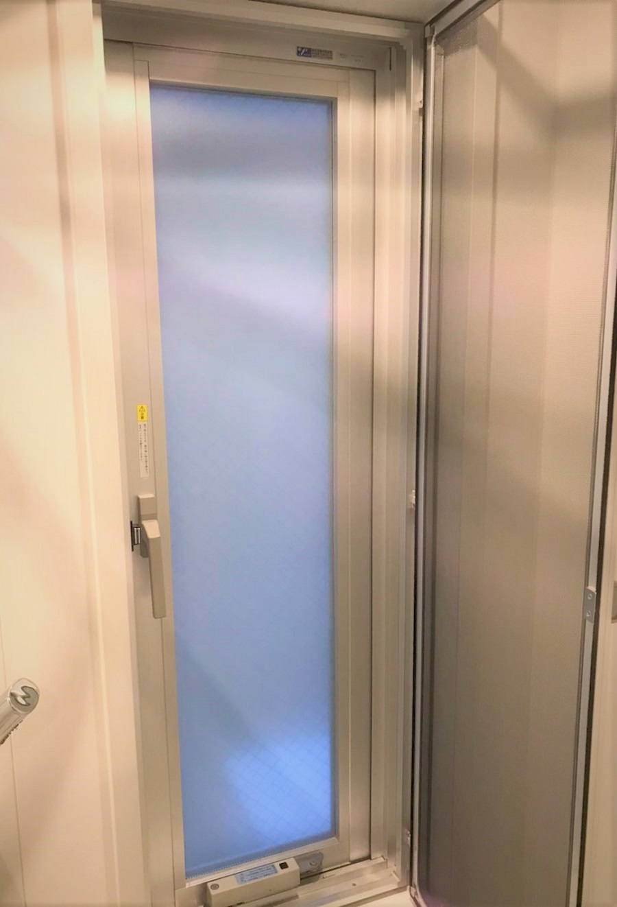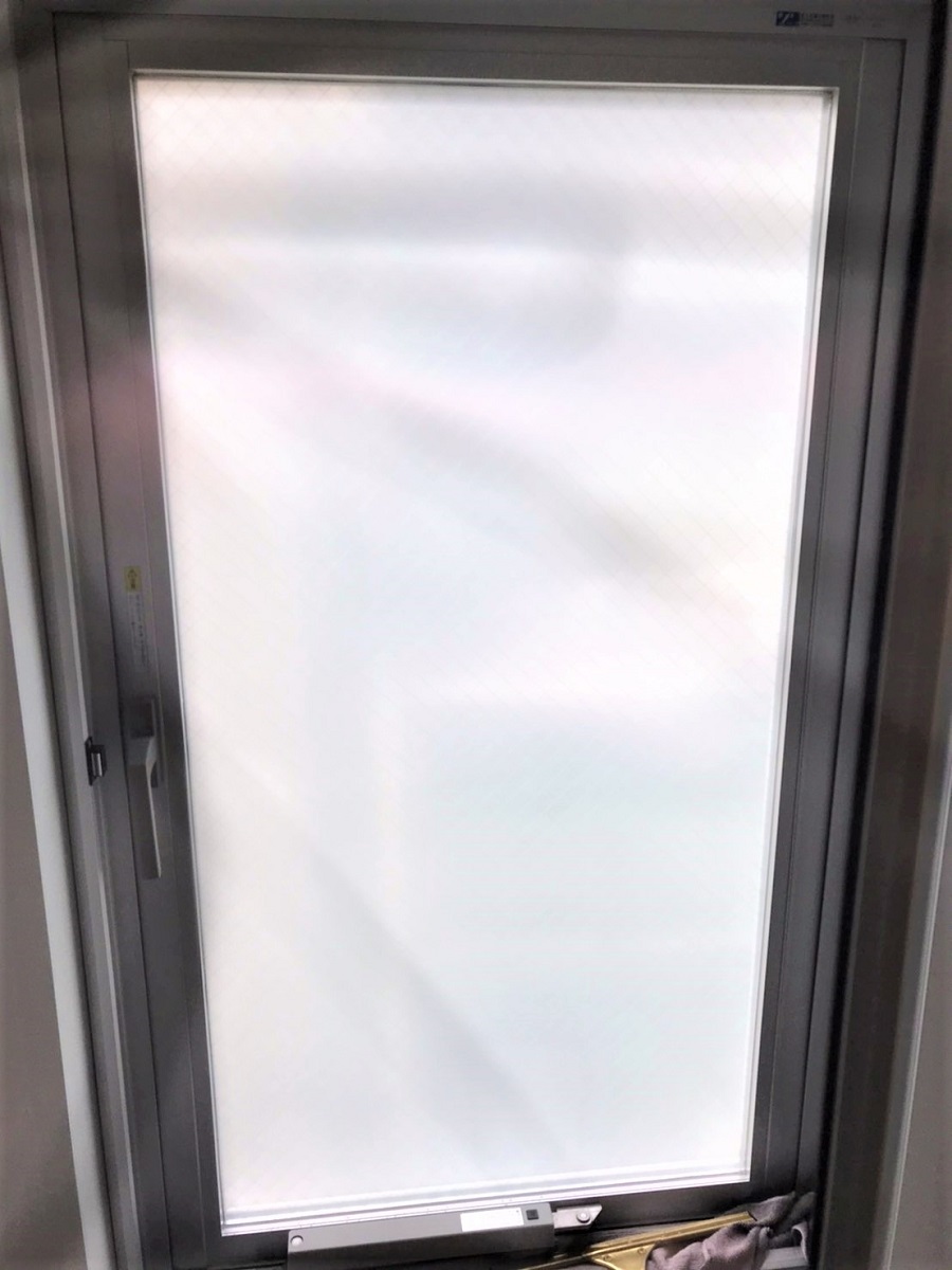 ‍扉の窓部にも貼り付け。外観はスリガラス調です。
