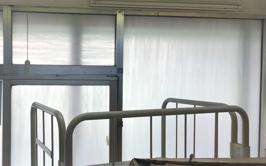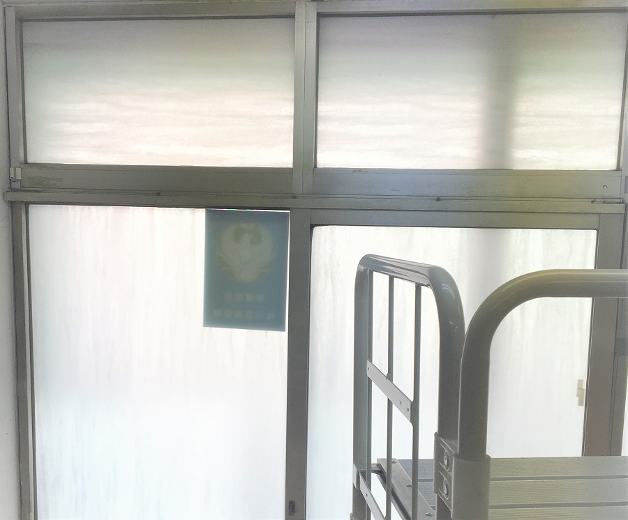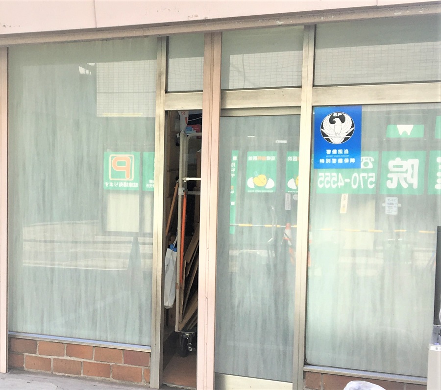 ‍店舗路面側の窓にデザインタイプの目隠しフィルムを貼付け。