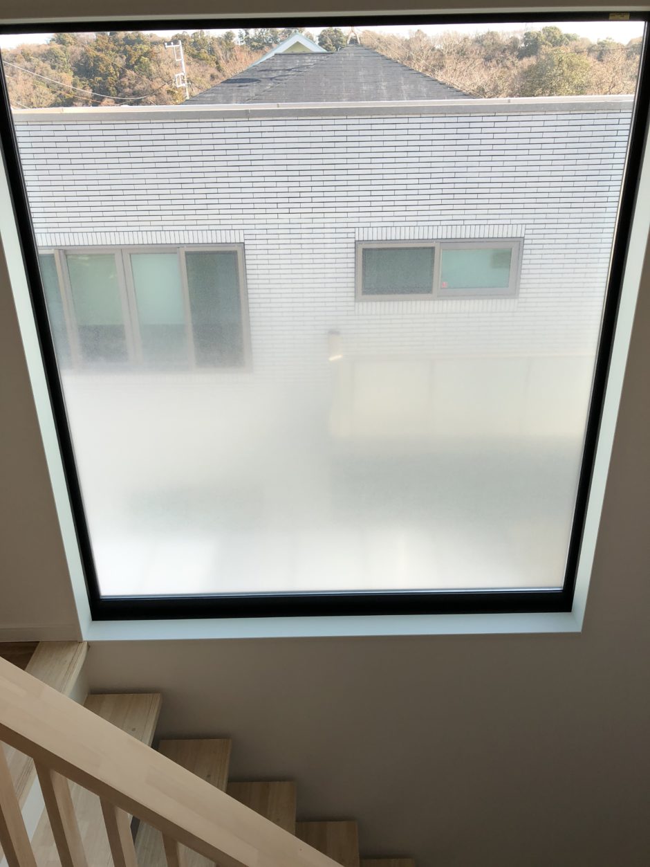 ‍施工後。隣接する家にはベランダがあり、外に隣人の方も出られる機会もあります。スリガラスタイプを貼れば、お隣からの視界を気にせず過ごすことができます。