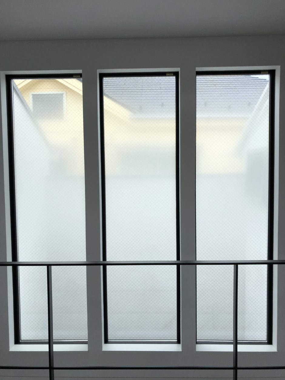 ‍こういうタイプの場合、もしカーテンやブラインドを付けるとなると特注になり結構なコストがかかりますが、窓ガラスフィルムならお客様のご希望に沿ったサイズで施工可能です。