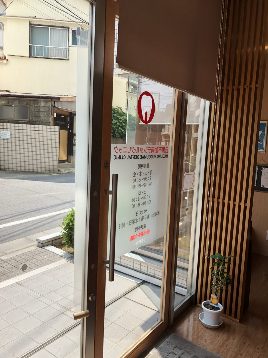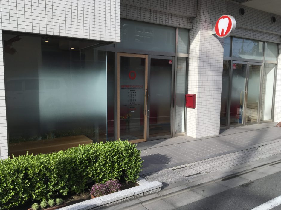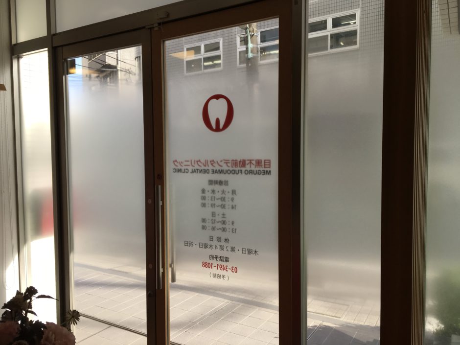 施工後のエントランス付近。文字のカッティングシートもグラデーションタイプの目隠しフィルムと一体感が出て、シンプルかつすっきりした印象に。