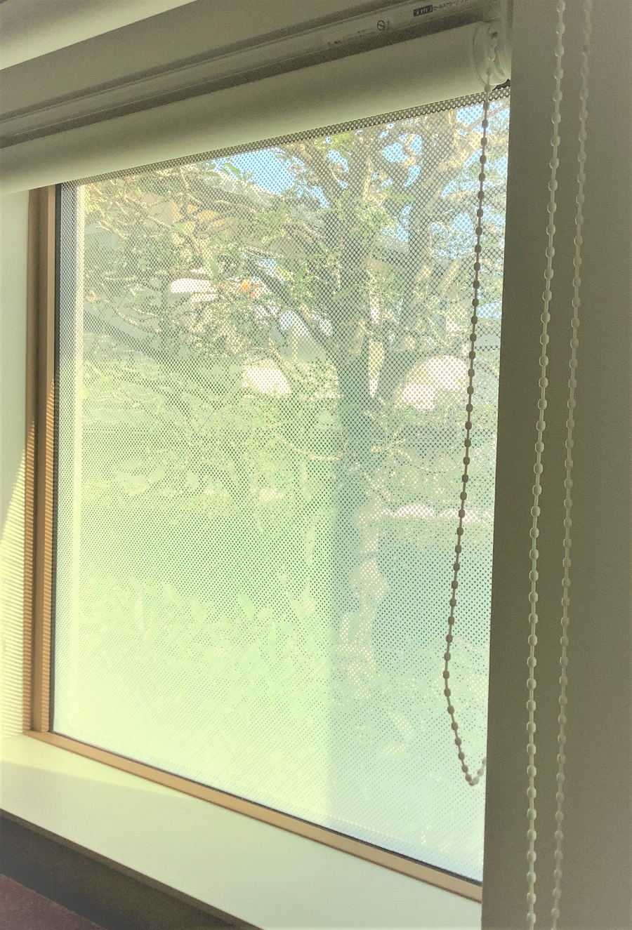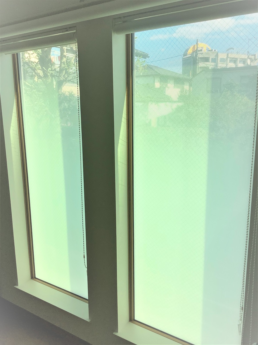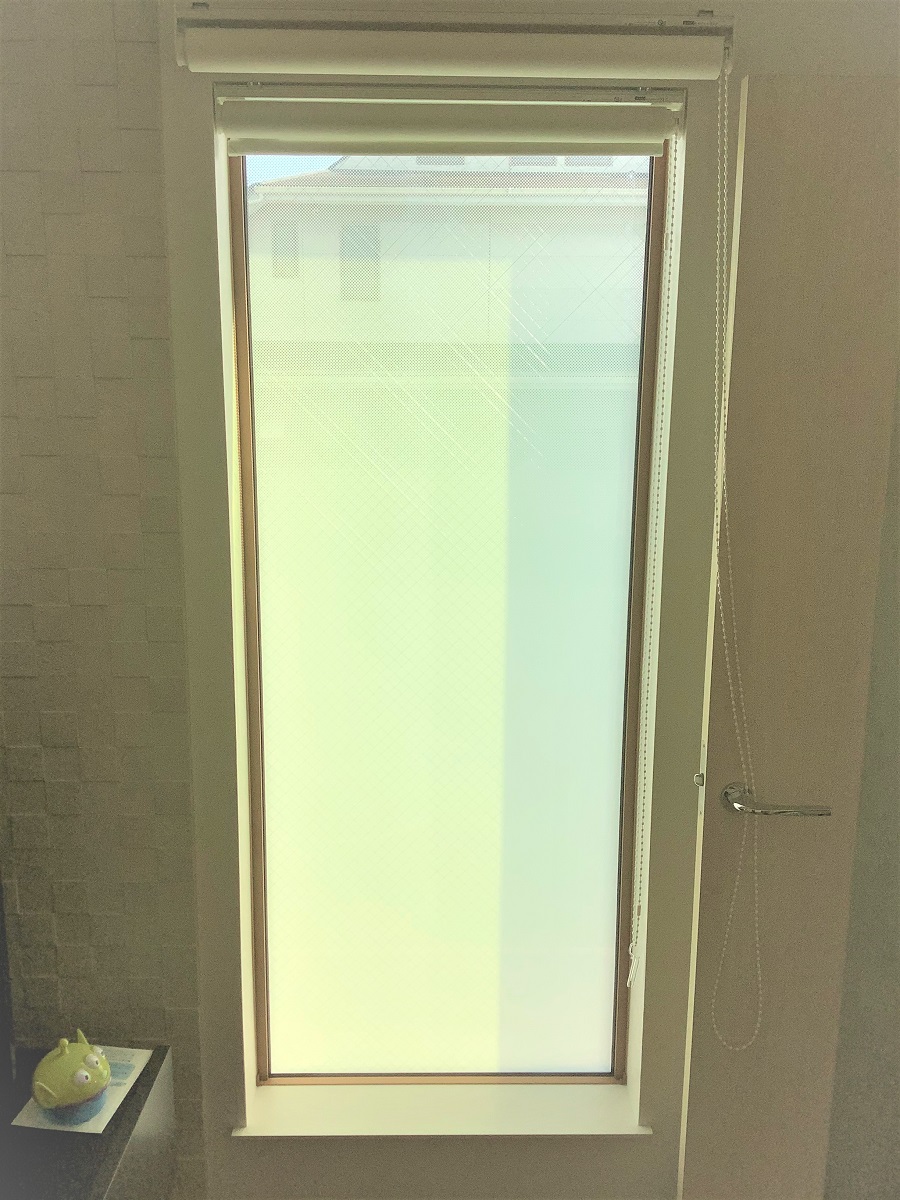‍住宅居室のフィクス窓にグラデーションタイプの目隠しフィルムを貼り付け。