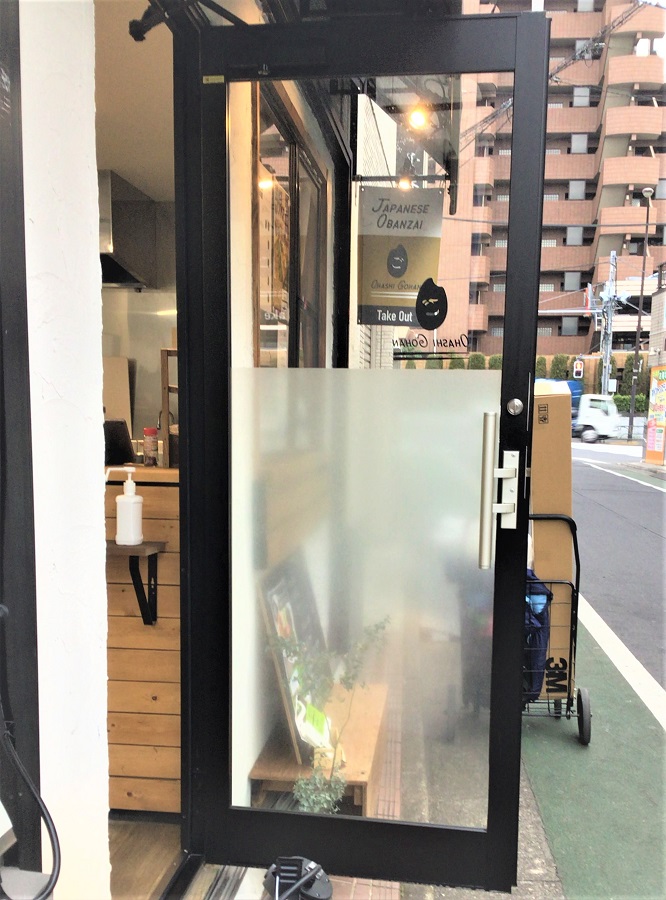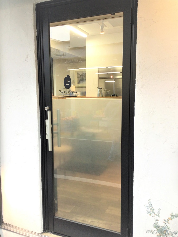 ‍店舗入り口のガラス扉、下部分にグラデーションタイプの目隠しフィルムを貼り付け。