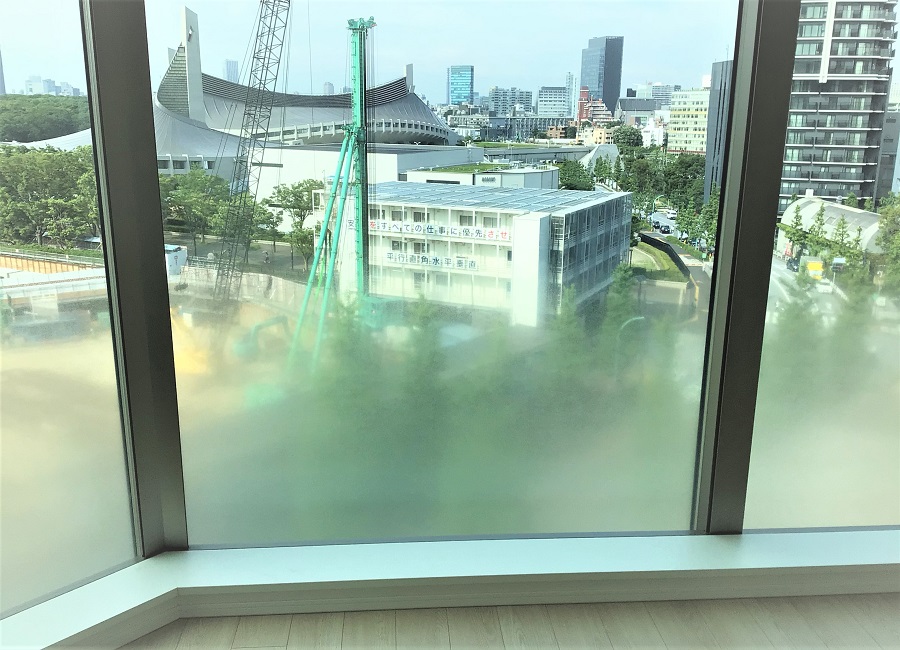 ‍マンション居室にグラデーションタイプの目隠しフィルムを貼付け。