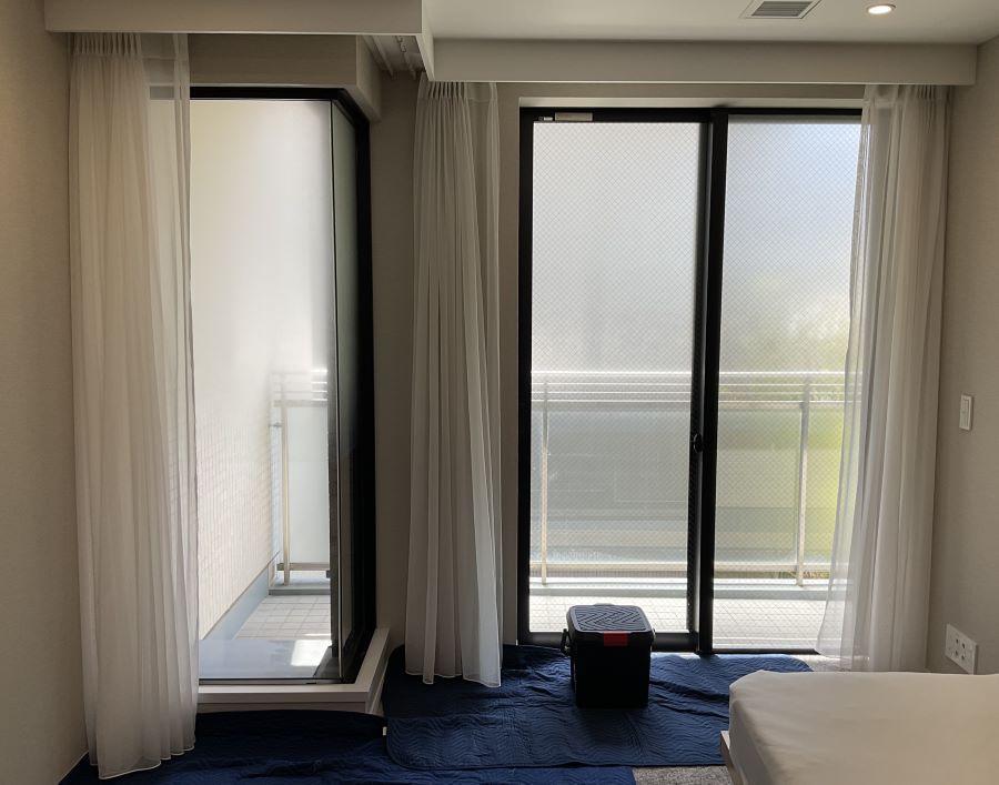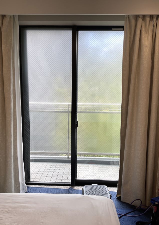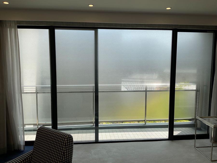 ‍マンションのご住居窓にグラデーションタイプの目隠しフィルムを貼付け。