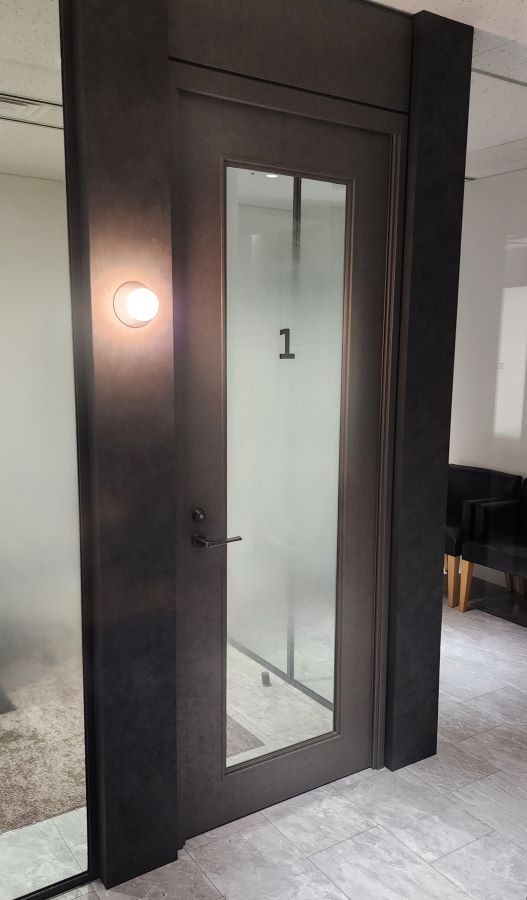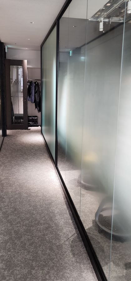 ‍オフィス内のガラスパーテーションにグラデーションタイプの目隠しフィルムを貼付け。